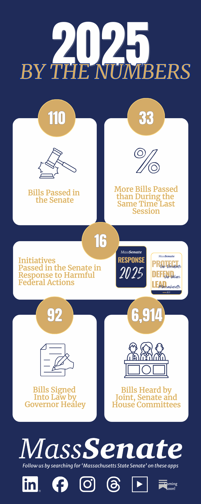 From landmark legislation to historic transparency measures, 2025 was a year of delivering for the Commonwealth. The Senate advanced bold initiatives to make life more affordable, protect privacy, and invest in education, health care, and transportation. Explore key highlights—including one of the nation’s strongest data privacy laws, and expanded protections for reproductive freedom—in our comprehensive Year in Review.